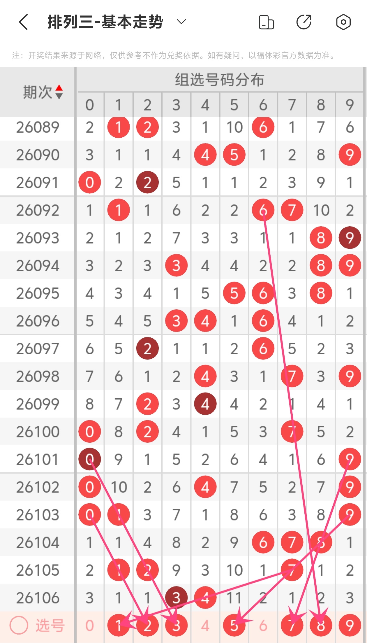 通过以上简单分析,我们看下26107期号码的定位分析: