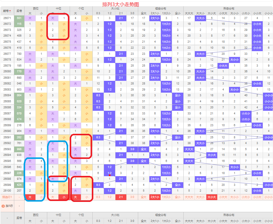 上一期大小比为1:2,两小的号码组合,近五期大号出5次,小号出10次,大号码出现较少,上一期是两小的号码组合,本期侧重两大的号码组合,百位侧重大号码,十位侧重小号码,个位侧重大号码,侧重大小大或者大小小的号码组合,根据大小形态五码定位56789/01234/56789或者56789/01234/01234