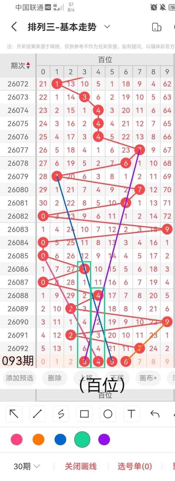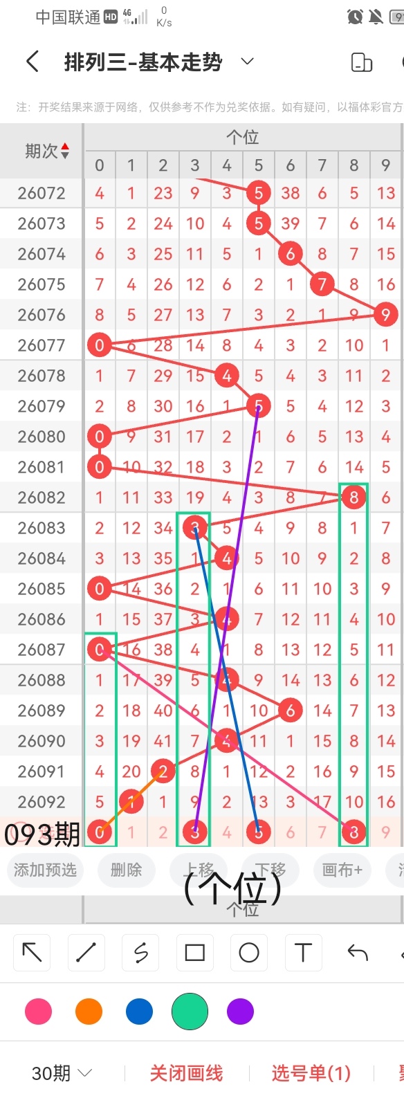 通过以上对上期的简单回顾,下面进入体彩排列三第2026093期(下面简称本期)的选号分析: