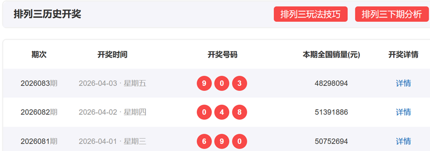 体彩排列3上一期,开奖号码为903,形态为组六,奇偶比为2:1,012路数值表现为000,和值12,和尾2,跨度9。