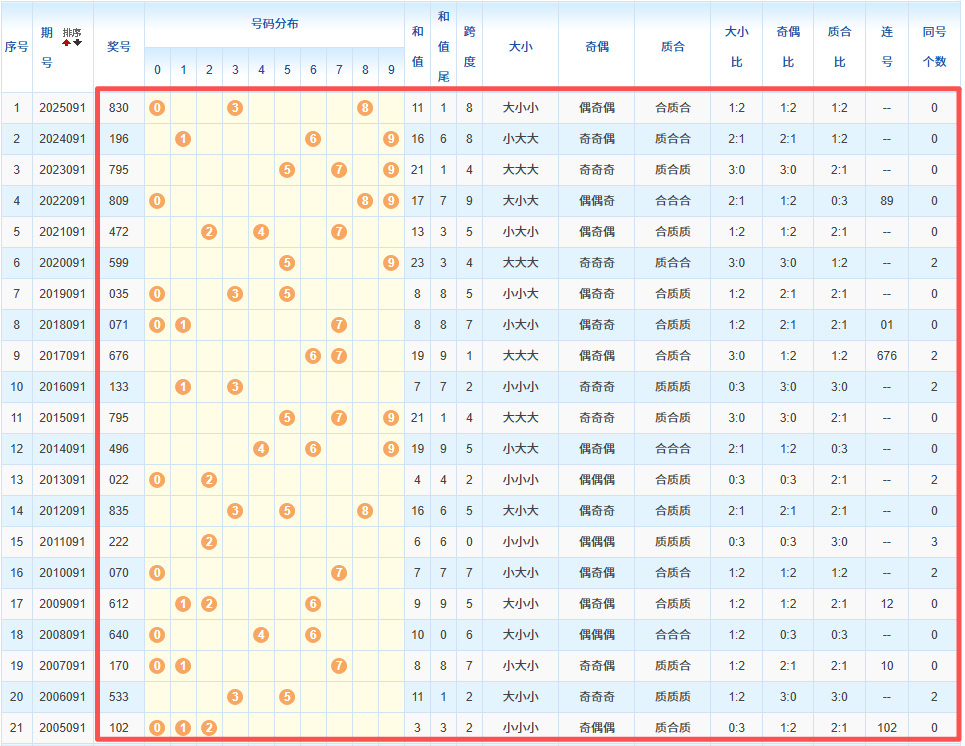 本文分别通过三个方面对本期排列三进行深度分析,这三个方面分别为:一:历史追随、二:往年同期数据、三:近期百十个遗漏值情况。