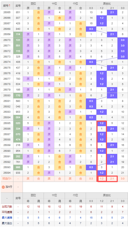 上期质合比:1:2,近10期质合比出现情况:1:2、2:1、1:2、1:2、2:1、1:2、2:1、2:1、0:3、1:2,最近10期出现4期2:1,出现5期1:2,出现1期0:3,出现0期3:0,根据近10期规律本期推荐连出的1:2,防遗漏2期出2:1,综上所述质合比推荐:2:1,重点关注:1:2。