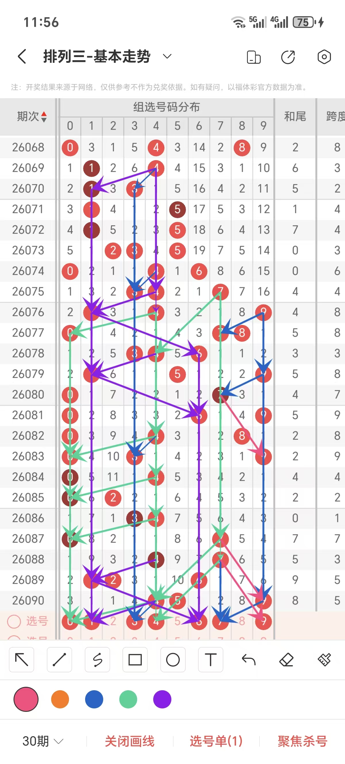 六 排列3第26091期组选号码走势分析