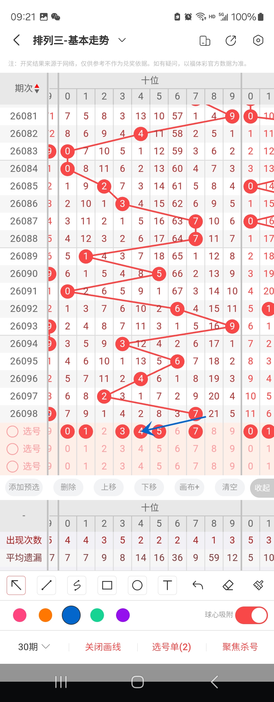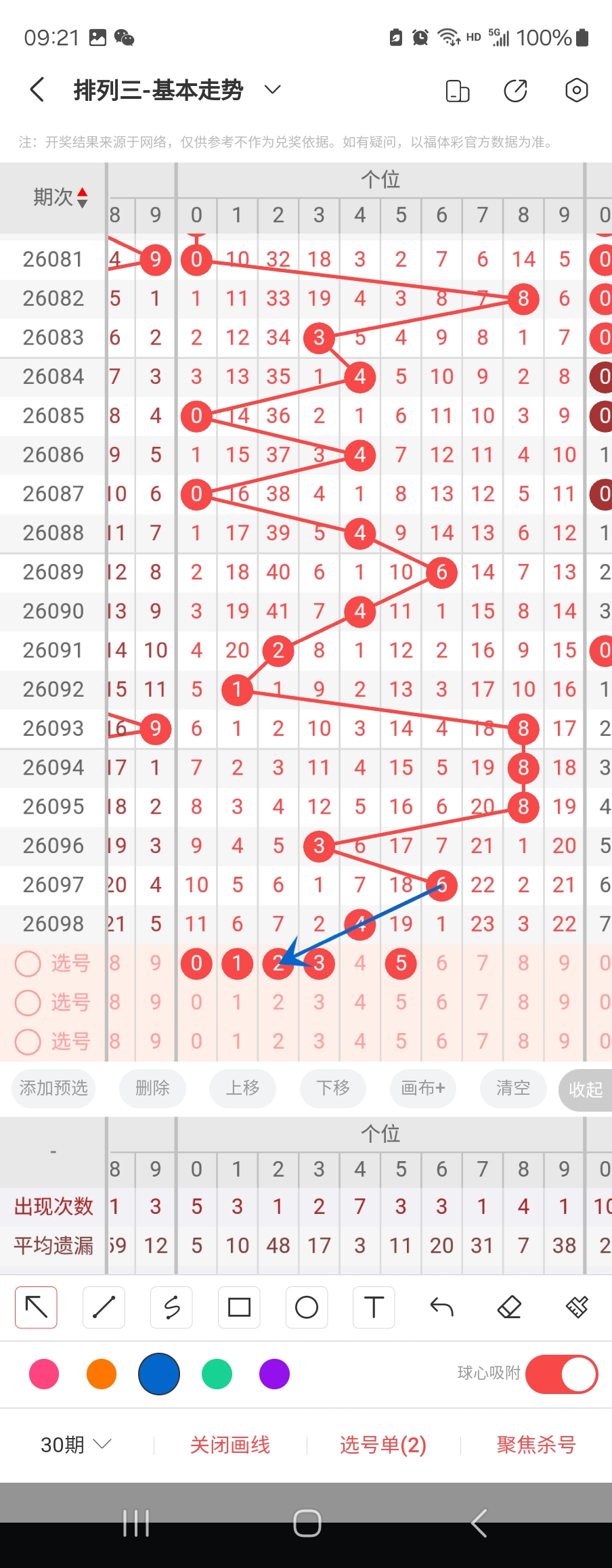 综合上期形态分布利于下期形态选号,约定12357为质,04689为合,147为1路,258为2路,0236为0路,