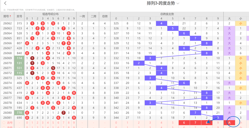 龙本龙-排列3-第082期定位分析,跨度看好大数号码