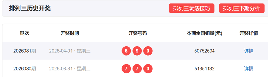 体彩排列3上一期,开奖号码为690,形态为组六,奇偶比为1:2,012路数值表现为000,和值15,和尾5,跨度9。