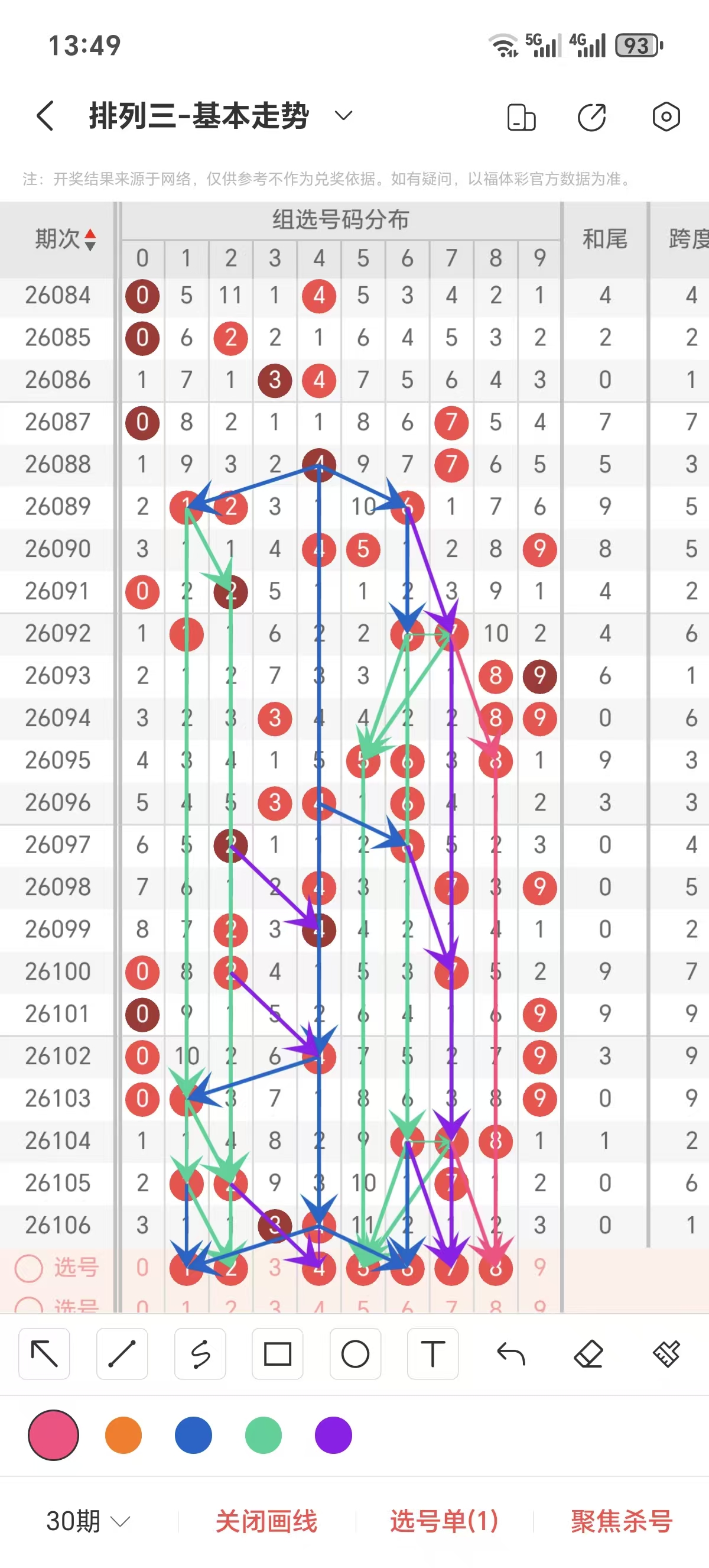 六 排列3第26107期组选号码走势分析