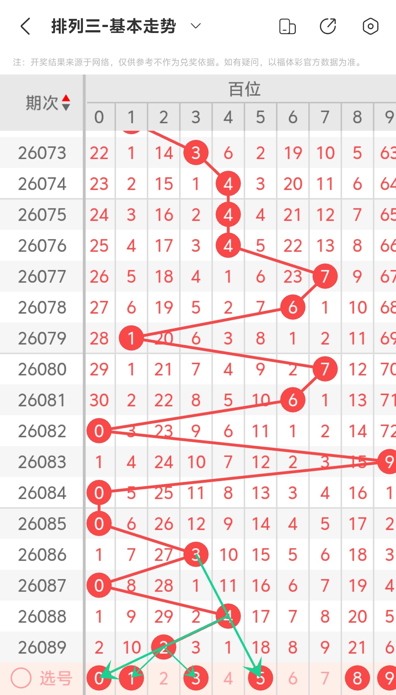 下面是体彩排列3的百位走势图分析