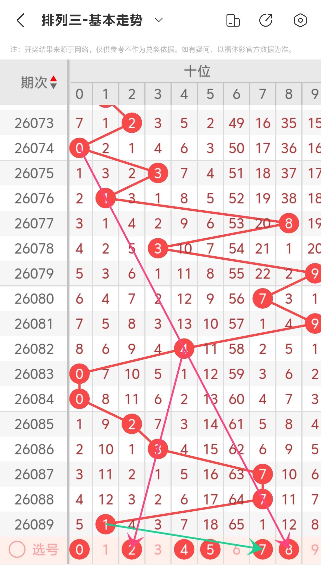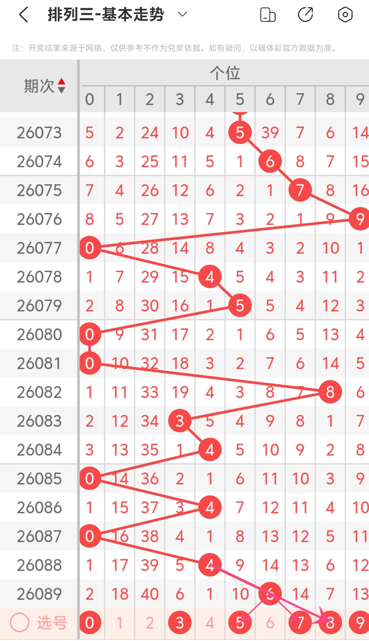 下面是体彩排列3的个位走势图分析