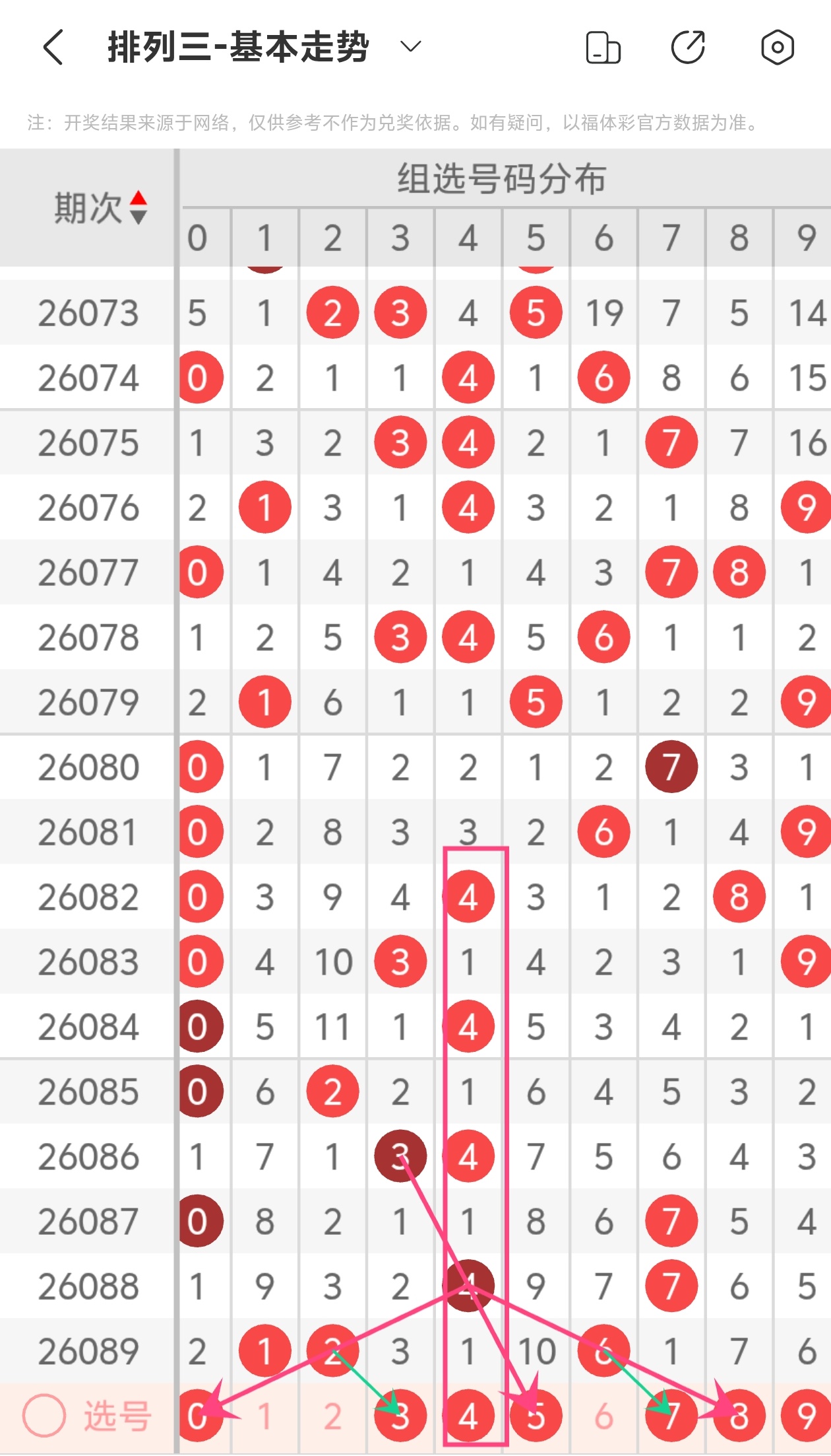 通过以上简单分析,我们看下26090期号码的定位分析:
