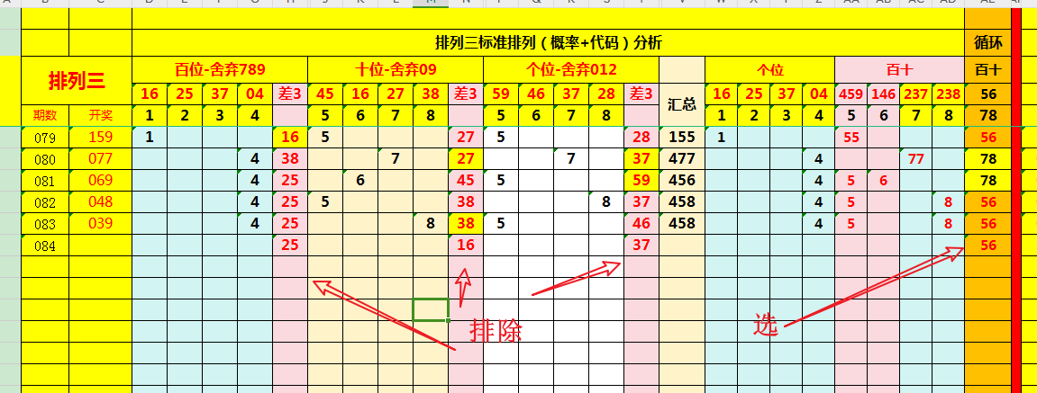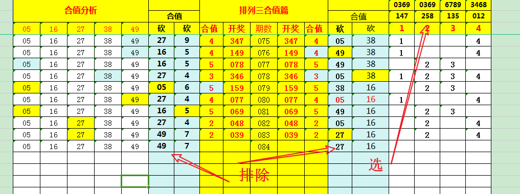 再观“两码合值”,此乃关键。其要旨在于百位加十位、十位加个位,取其和值之尾数。此步至关重要,可如沙里淘金,剔除诸多不靠谱的“垃圾组合”。 复盘数据,构建表格如下: