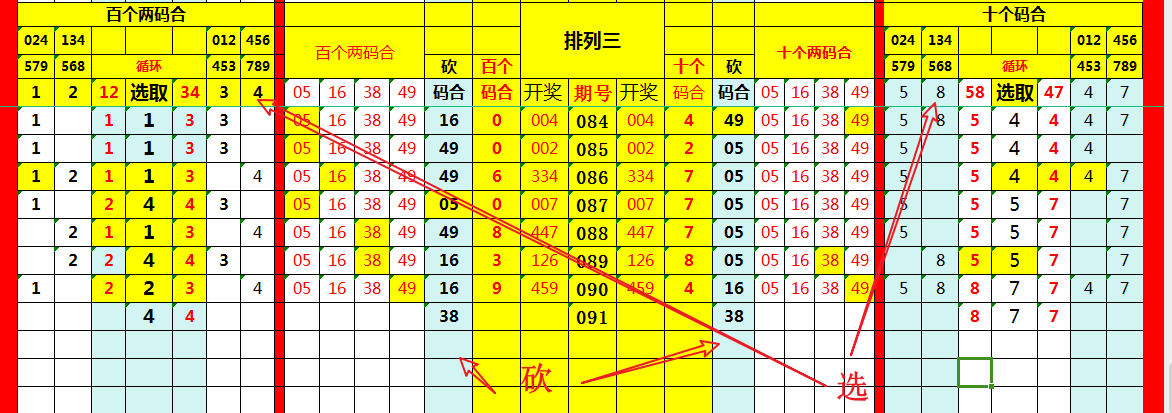 再观“两码合值”,此乃关键。其要旨在于百位加十位、十位加个位,取其和值之尾数。此步至关重要,可如沙里淘金,剔除诸多不靠谱的“垃圾组合”。 复盘数据,构建表格如(图):