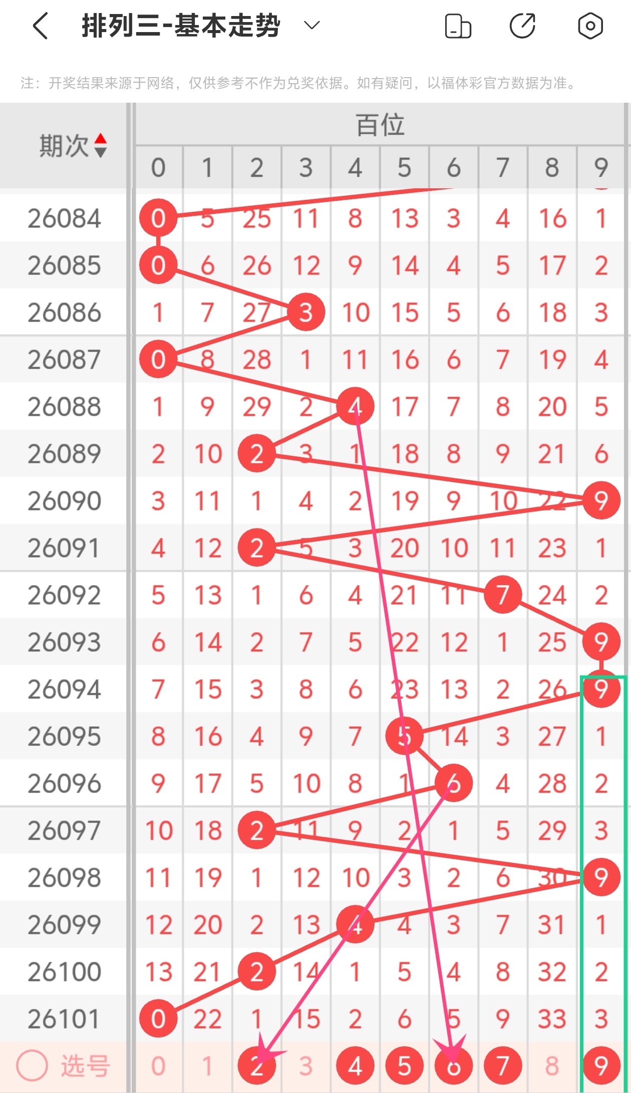 下面是体彩排列3的百位走势图分析