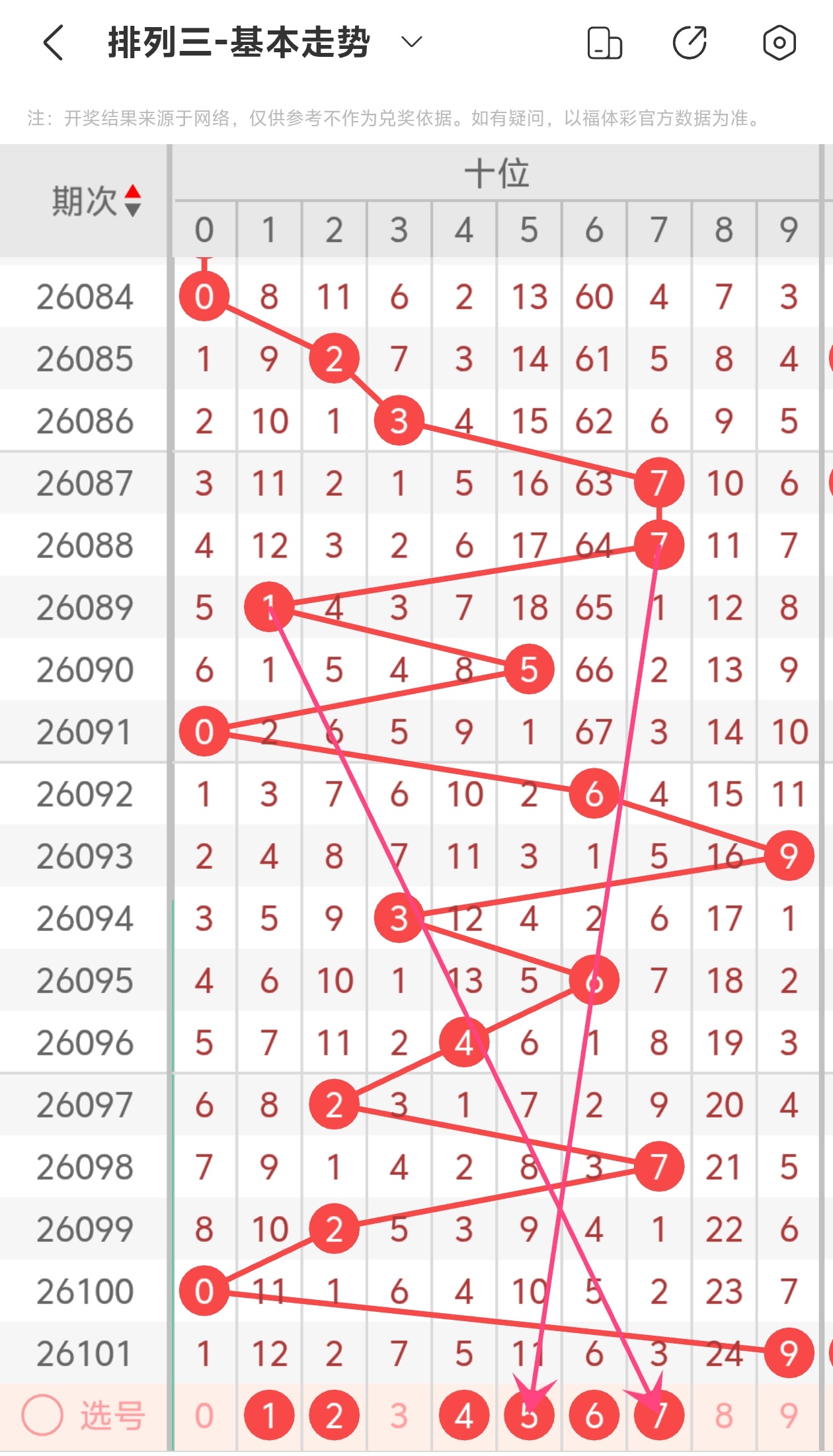 下面是体彩排列3的十位走势图分析