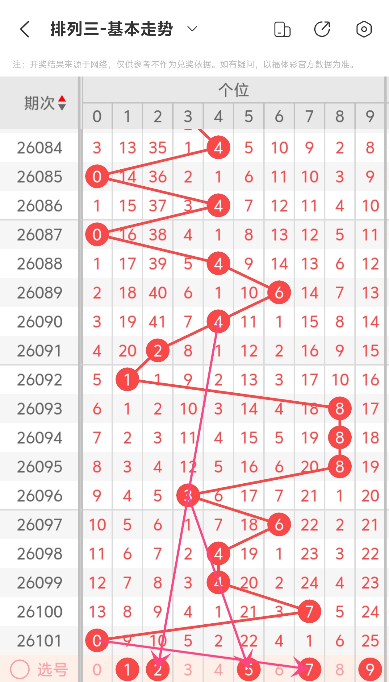 下面是体彩排列3的个位走势图分析