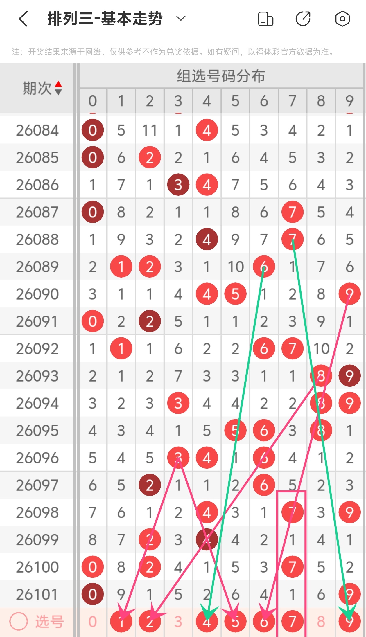 通过以上简单分析,我们看下26102期号码的定位分析: