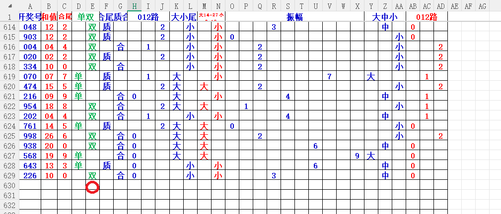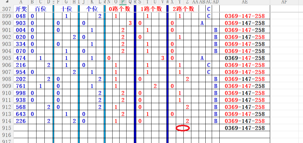 如上图56,012路分析0路出号的概率还是很大,本期可以从0路号入手做胆0369中选;看好369胆码。