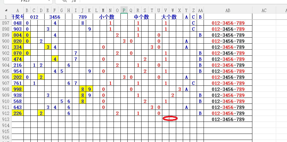 如上图7,012路分析-1路出号的概率还是很大,本期可以从1路号入手4代表78。