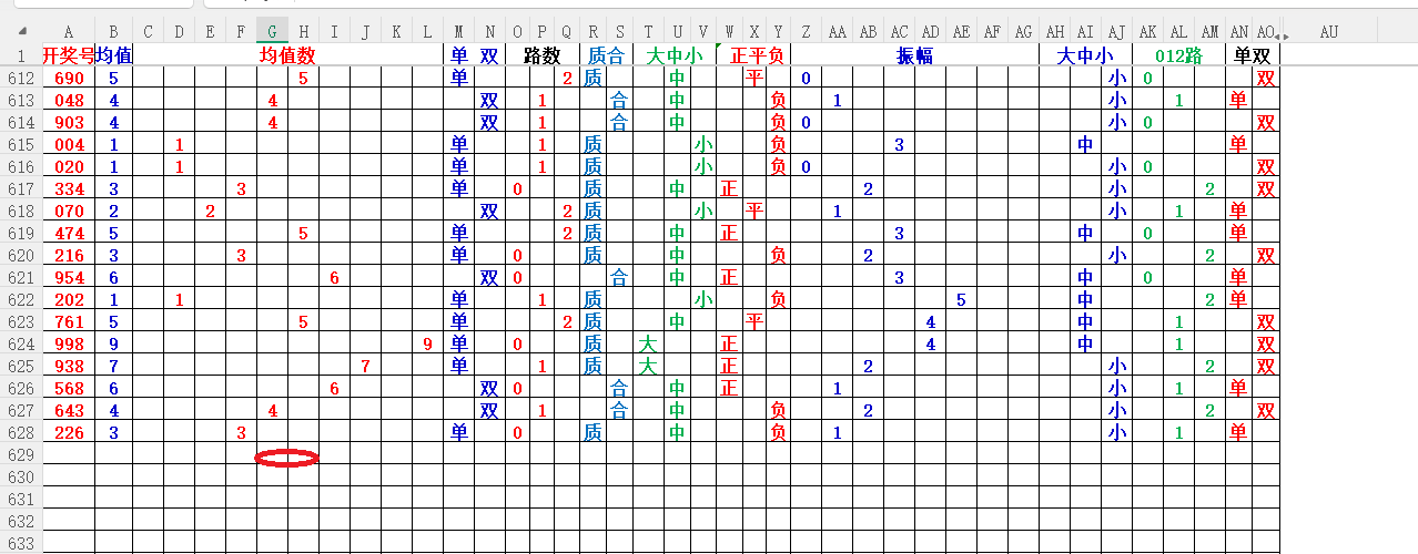 如上图1,大中小分析,均值小中大数比较好,也就是 3456 均值最好,重点:45。