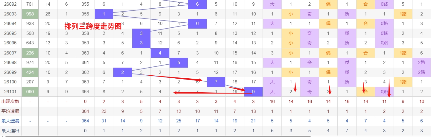 排列三第2026101期开奖回顾:开奖号码:090 形态:组三