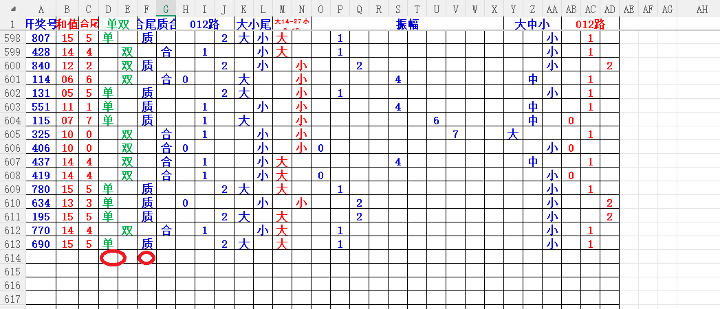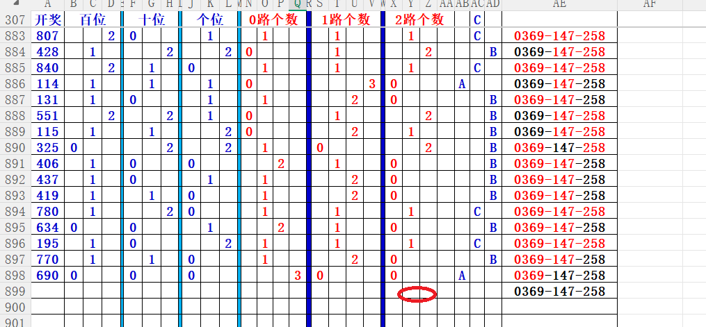 如上图2,012路分析,01路尾走比较好,关注3456尾;