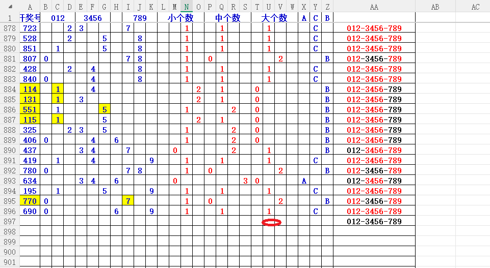 如上图2,大中小分析来看,中小数尾3456尾,可以考虑定345尾。