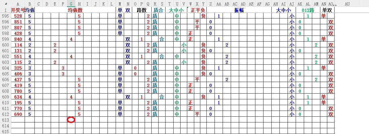 如上图1,大中小分析,均值小中大数比较好,也就是 3456 均值最好,重点:45。