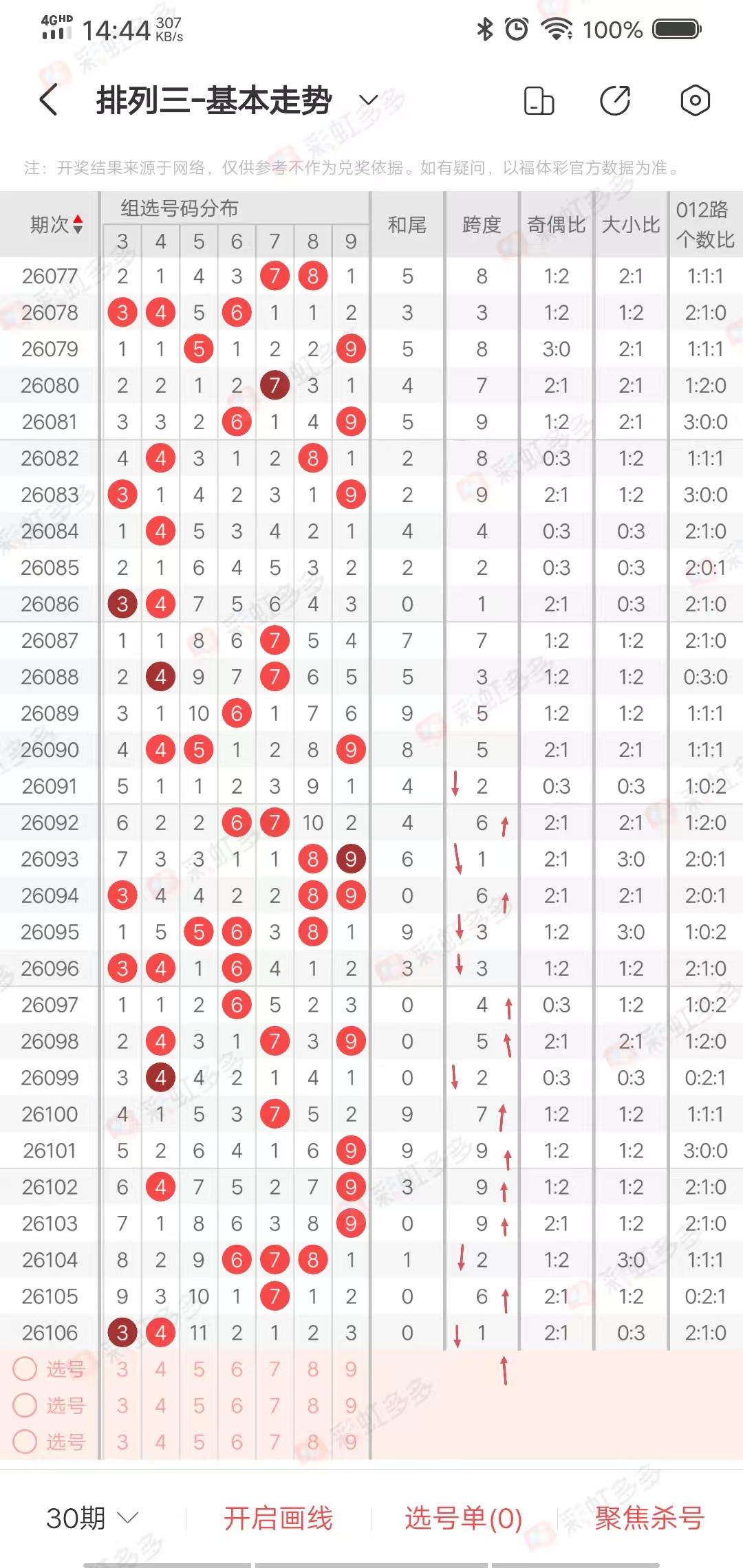 从走势图可以看出,近期跨度幅度➕0-3➕4-5➕5-3-0➕1➕1-3➕5➕2➕0➕0-7➕4-5,幅度在上下5左右,近12期多走上下走势,上期下降,本期有上升走势,综合跨度6895