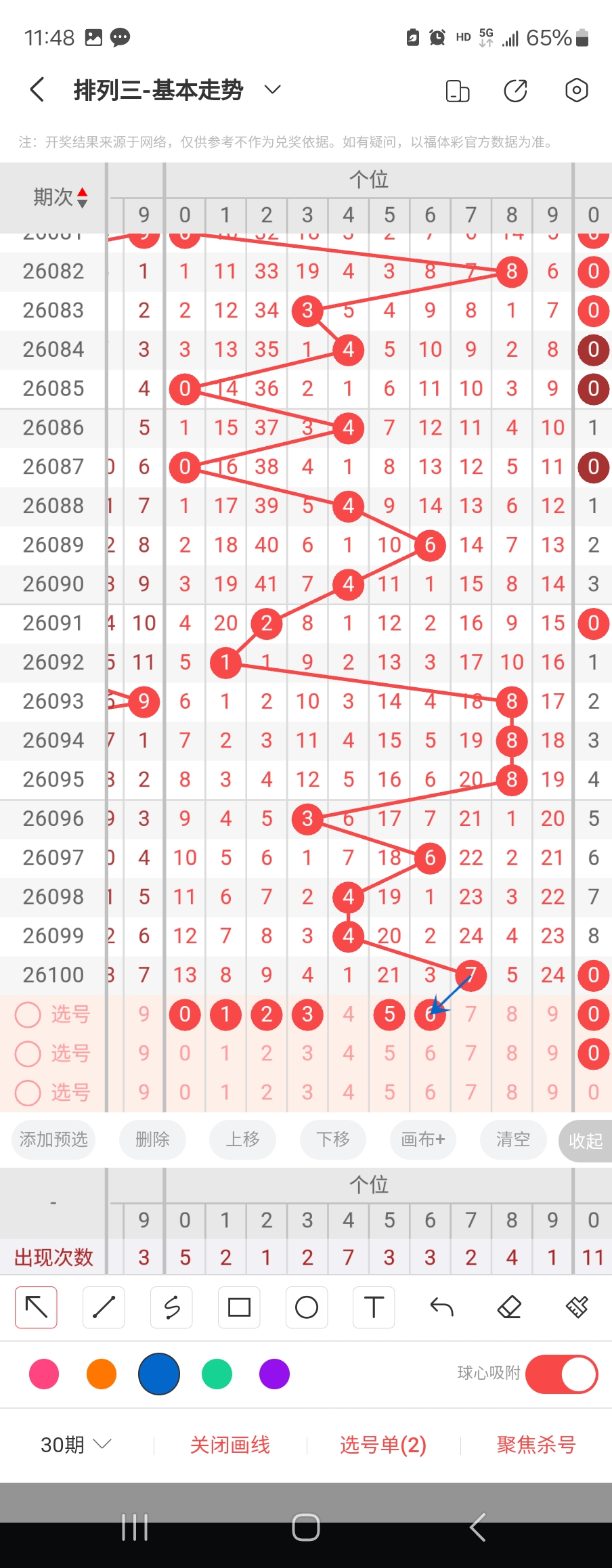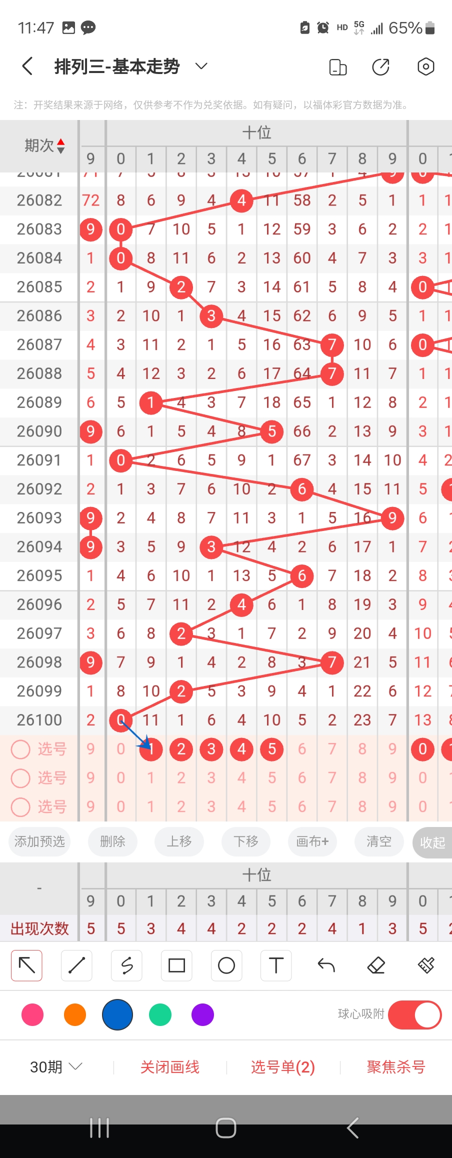 个位走势标注如下图;