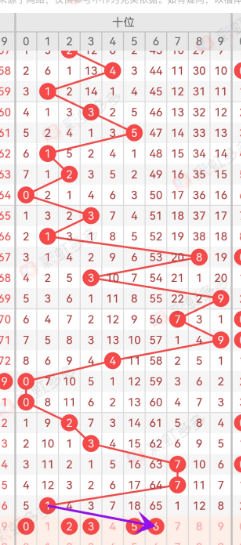 上期十位开出1号球,小号(01234),本期看好大号(56789)号球,1号球十位开过前后关系出现过有8号球,大号看好6号球防5号球,小号看好0号球防23号球。接下来分析十位奇偶走位,根据前面的走位数据分析,本期看好偶数,防奇数,综上分析,十位关注02356的走位!