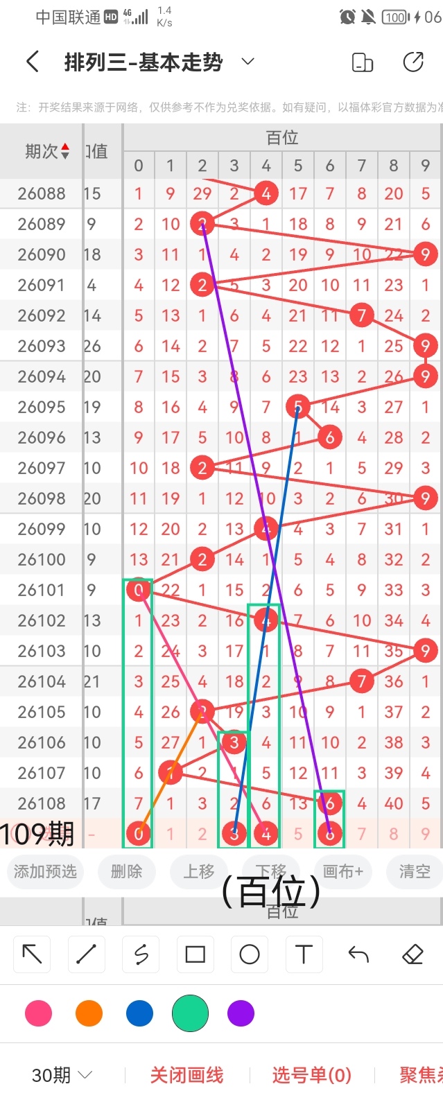 通过以上对上期的简单回顾,下面进入体彩排列三第2026109期(下面简称本期)的选号分析: