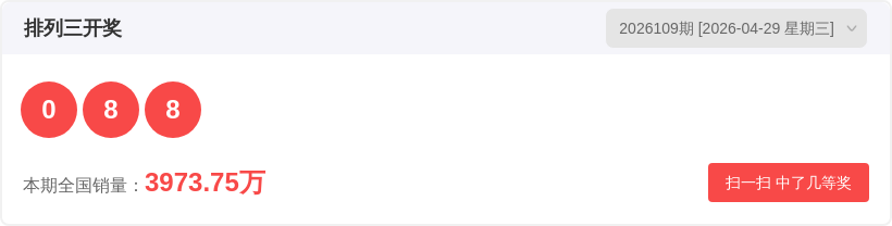 排列326109期开奖结果0 8 8,跨度8,和值16,豹子/组三/组六为组三,012路比1:0:2。