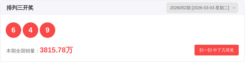 排列326052期开奖结果6 4 9,012路比2:1:0,大小比2:1,豹子/组三/组六为组六,质合比0:3。