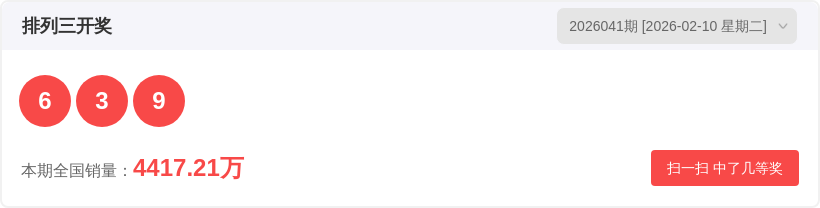 | 26041 | 6 3 9 | 6 | 组六 | 1:2 |