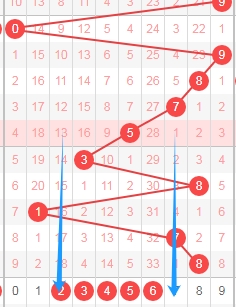 上图是体彩排列五从左到右定位第三位数字走势图,我标志出来的蓝色箭头中间这个区域的数字23456连续4期没出现号码,最近十几期这个区域出号码也不多,那么本期第三位数字可以关注这个区域的数字,最看好数字2456。