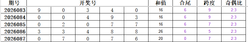 体彩排5第2026087期开出中奖号码为07076。下面来详细剖析各位置数据: