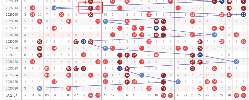 上图是福彩七乐彩开奖号码走势分布图,我在上面走势图中标注出来的数字都是9尾数数字和0尾数数字组成的连号组合,分别是组合0910 1920 2930这3组连号组合已经连续遗漏了12期,上次开出的是0910上面红色框框标注出来了,上期连号一组都没出现,那么本期出连号组合也是有的机会的,那么本期大家留意这三组连号出现。