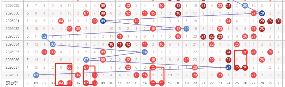上图是福彩七乐彩开奖号码走势分布图,我标注出来的红色小框框里面的数字看看,上面出现了连号2526其中数字26是隔一期,那么按照这个特点来分析的话,那么本期可以关注连号组合0405因为数字05也是隔一期的,还有连号组合0708其中数字07也是隔一期的,还有连号组合1516其中数字15也是隔一期的,那么你们看看上面标注出来的红色小框框是不是很相似呢?
