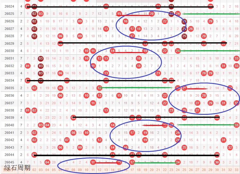 如图所示:体现的是3个局部走势的发展周期,圆圈为密集处的填空,本期定性为新局部走势3期修饰真实目的空间填蛋跨期,定性本周期蛋跨6-16,真实空间17-24,本期绿色线方大合并红色线。主在13区出号。大小均衡。