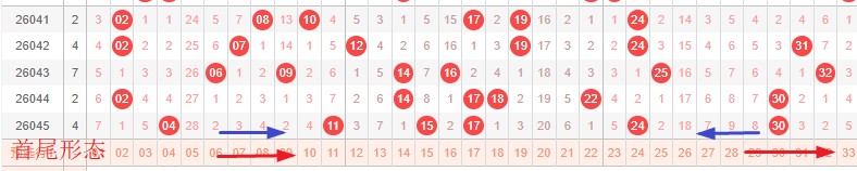 如图所示:首尾制约平衡组范围依次为:推拉推,推缩? 本期形态范围优先选择红色右推首尾。由于上期号码已经进入新走势第2期,目前处在新走势第3期,利用常规起号形成右推还是压缩,就是走势正反方向。