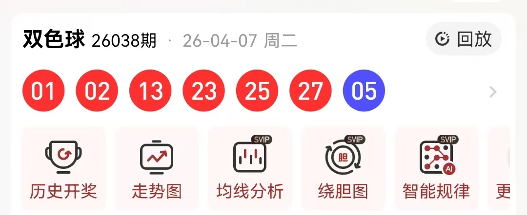 先来回顾一下第2026038期的双色球开奖结果:01 02 13 23 25 27+05,以下是对本期数据的详细分析:
