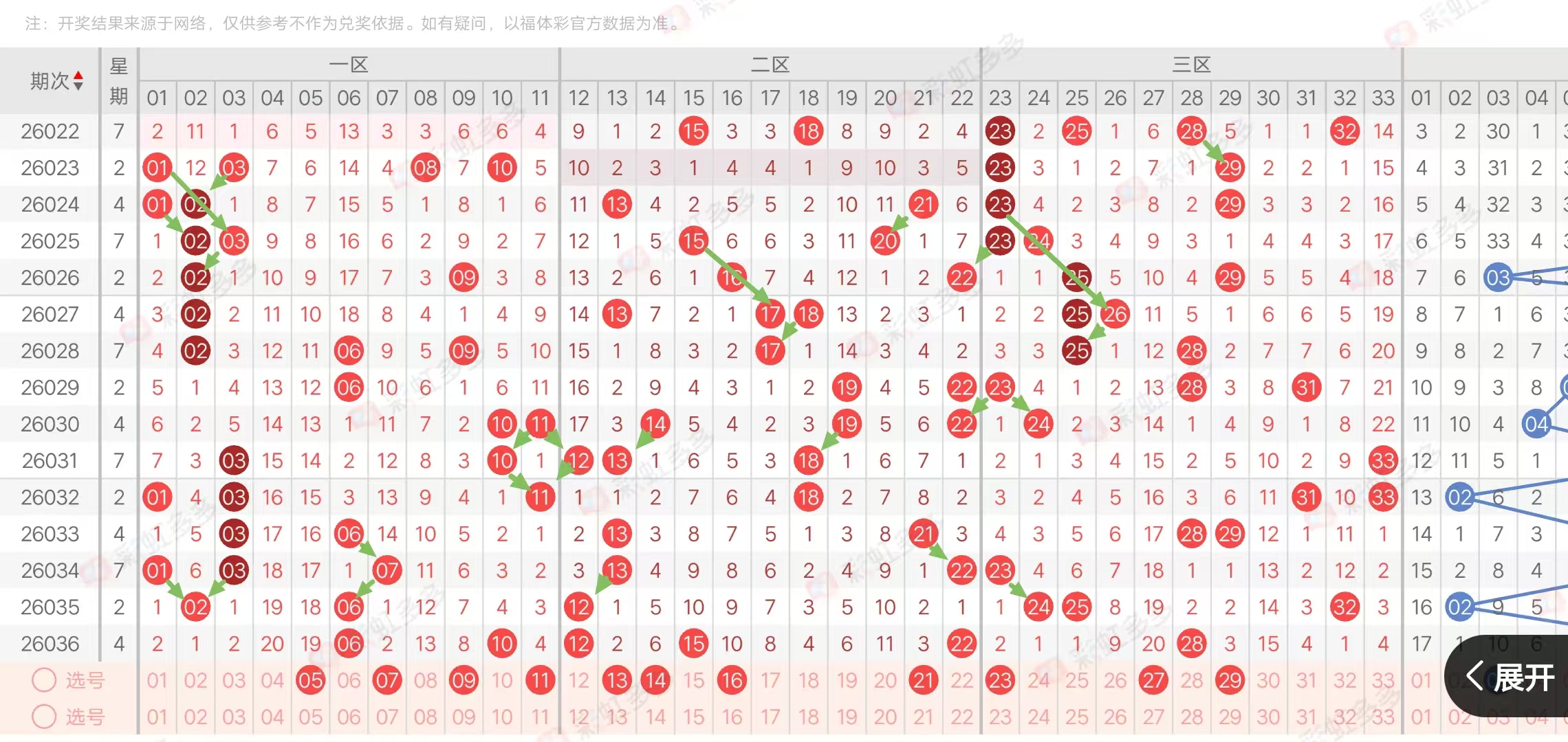 (三区:一区1-11,二区12-22,三区23-33)上期三区比2:3:1