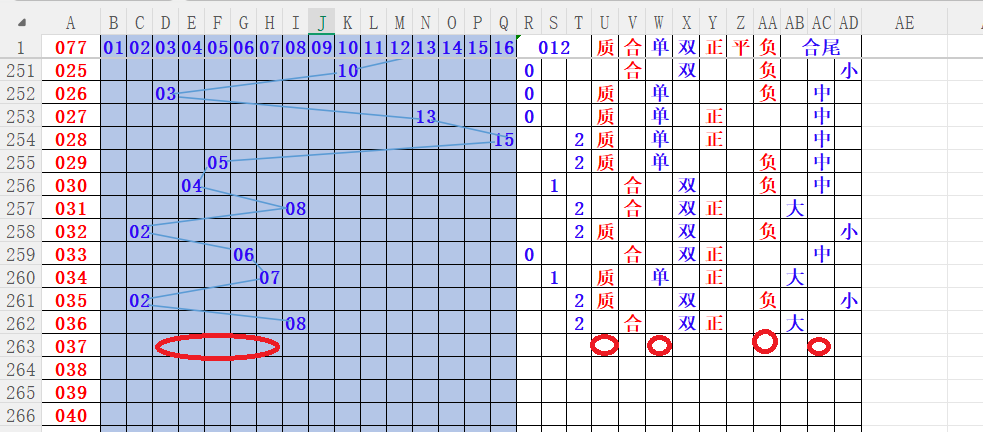 如上图4,质合分析,质数连续两期,本期重点合 03 04 05 06 07 关注 。