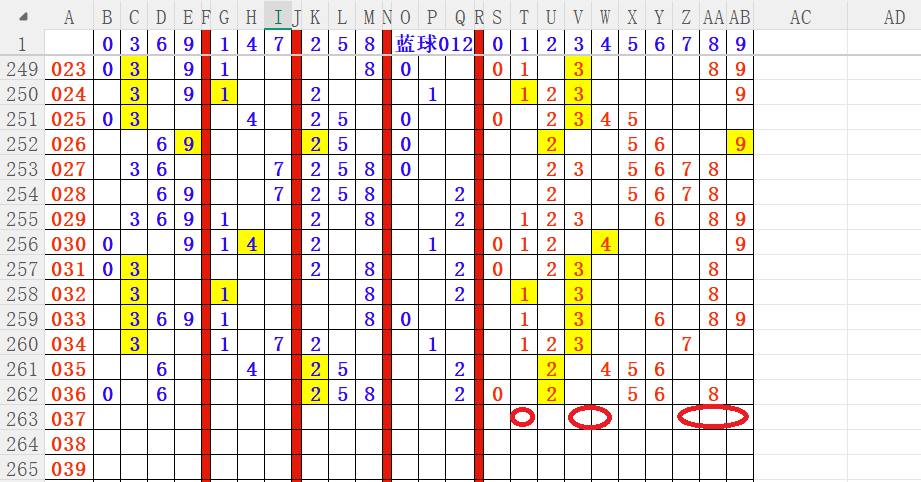 如上图4,012路分析012路,本期重点10路。重点 03 04 05 06 07