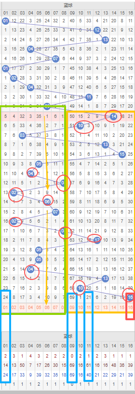 双色球上期蓝号开出一个大号偶数16号,近二十期开出了8期大号和12期小号,之前还连出过七期的小号,而近五期内有3期都开出的大号,那么本期开出大号的概率较大。如图所示蓝区的遗漏期数大的冷号很多,可以考虑遗漏期数较大的大号,比如09号、11号,建议都防冷号开出。09号是蓝区遗漏期数最大的开出的可能性非常之大,可以防冷号开出。遗漏期数较大的01号也可以考虑防冷号开出。