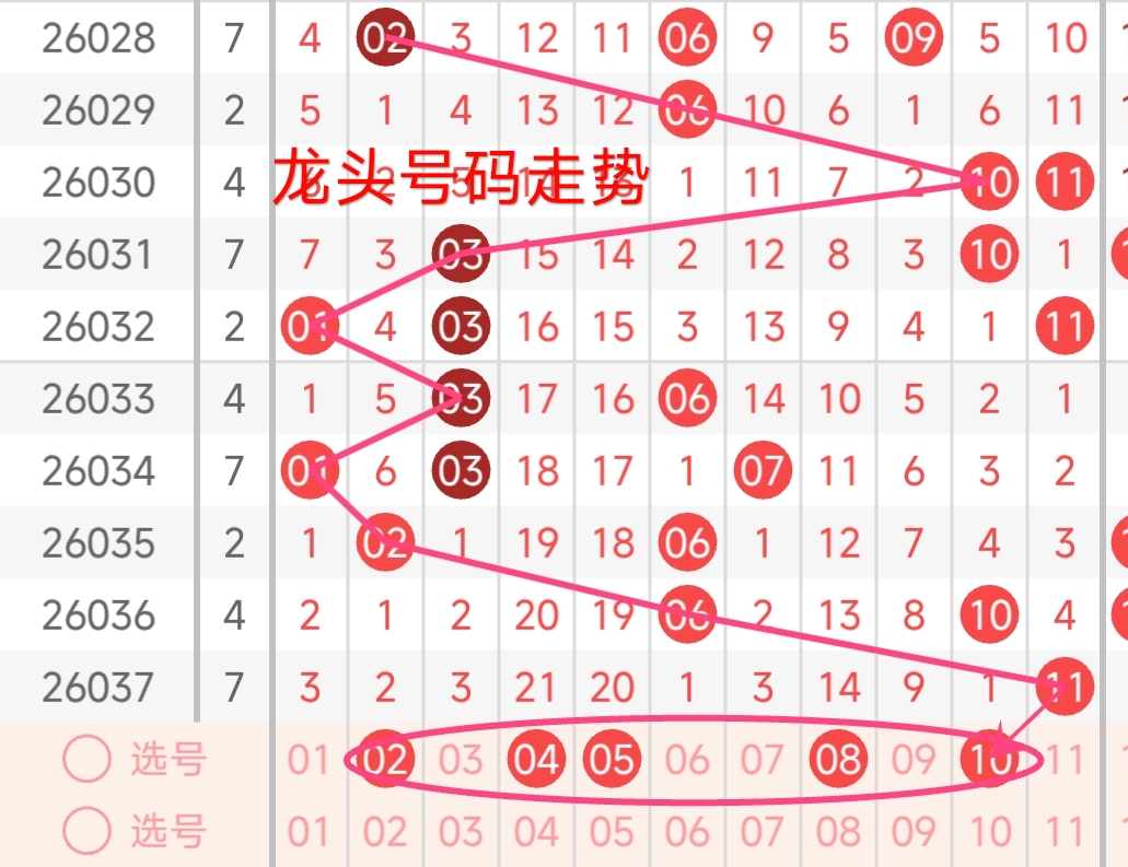 龙头号码走势分析: