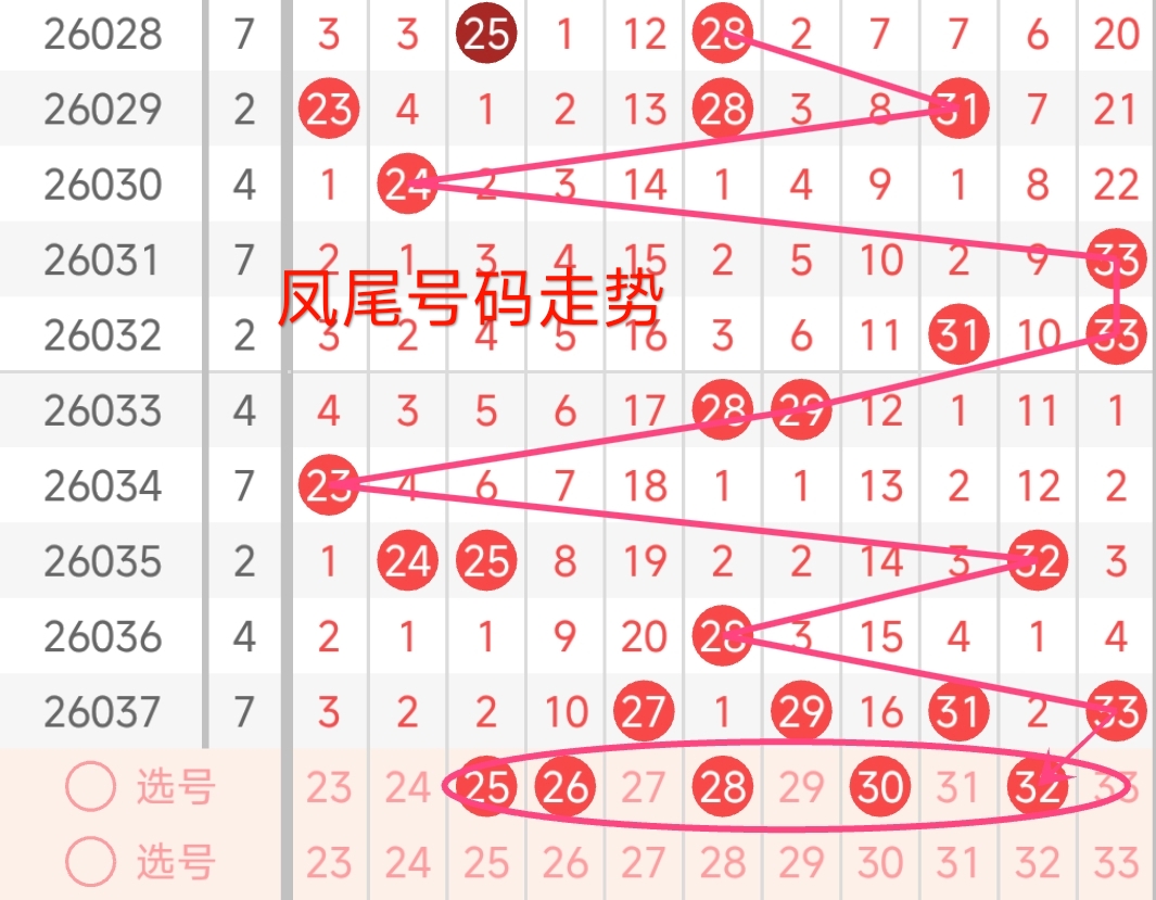 凤尾号码走势分析: