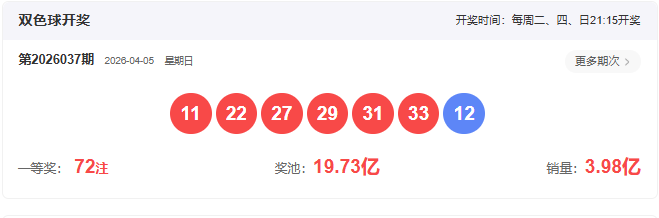 2026037开奖号码: