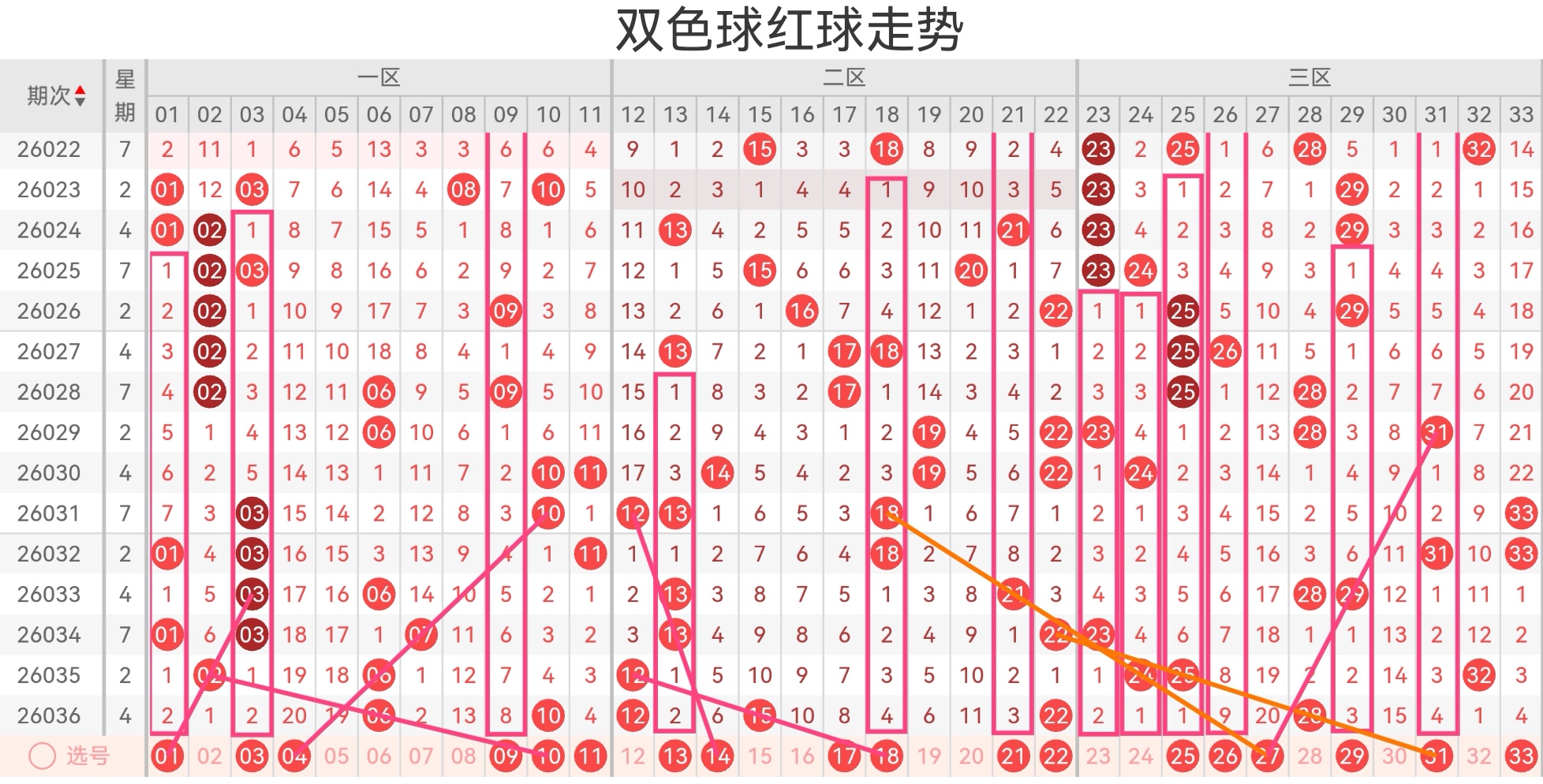 双色球第26037期基本走势分析如下: