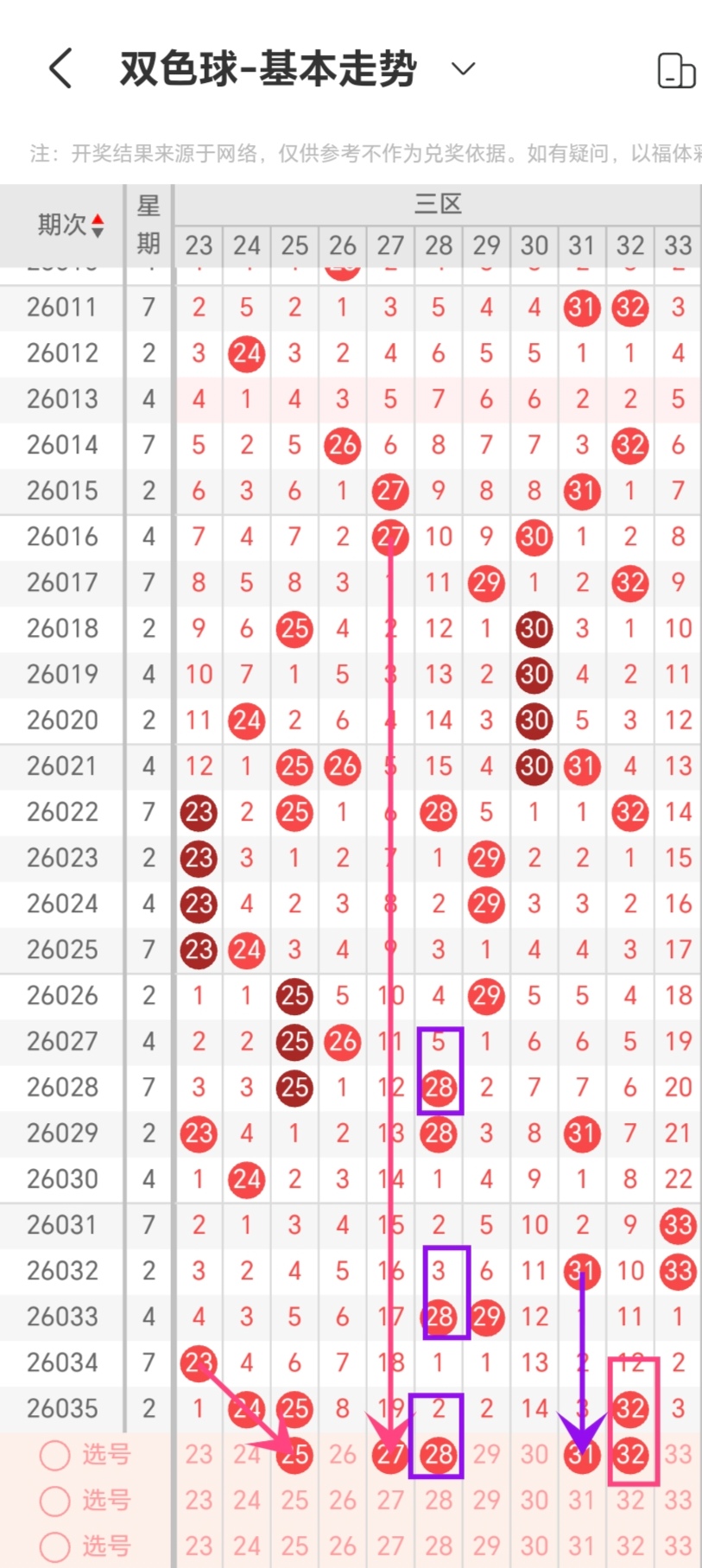 各位兄弟姐妹们大家好,我是nice,我喜欢研究数字的走势规律以及数据分析,通过同期次、同日期、同星期奖号等等出号规律进行杀号和做数据条件,红球杀号的准确率和稳定度都相当不错,首先通过上面的模块进行杀号可以做到杀红球12-15枚,然后将杀号带入到数据条件中进行选胆,这种方法屡试不爽帮助自己排除很多不必要的号码,将红球选号的数量控制在10-12枚,结合红球杀号带入到数据条件中选出的胆码,做胆拖组合控制成本